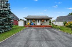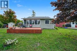 Located in the popular Lakes of Wasaga resort community, this charming year-round home offers 856 square feet of living space, including a bright two-season sunroom. The community provides a resort lifestyle with access to tennis courts, mini golf, pools, and children’s play areas. Inside, the home features two bedrooms and a three-piece bathroom with a newly updated sink backsplash. The spare room includes a built-in Murphy bed and desk, providing a flexible option for guests or a home office. The open-concept living room, dining room, and kitchen showcase cathedral pine ceilings and walls, creating a warm, inviting atmosphere. Convenience is enhanced with a stacked washer and dryer. Additional highlights include an in-ground irrigation system, generous-sized shed, and freshly stained front and back decks as well as the sunroom floor. A new AC unit was installed in May 2025. The backyard features a fire pit, perfect for relaxing evenings. The home also offers a four-foot crawl space with ample storage, housing the furnace and hot water heater. A paved driveway provides parking for three vehicles. From here, it’s just a short walk along two dedicated paths to New Wasaga Beach. Monthly fee of $772.01 (on leased land) includes property taxes, lease fee, maintenance. (id:27)