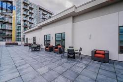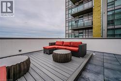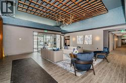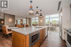 Experience elevated living in this stunning penthouse retreat perched on the 12th floor, offering 638 square feet of thoughtfully designed space. This 1 bedroom plus den residence impresses with soaring 10-ft ceilings and an abundance of natural light streaming through floor-to-ceiling windows. Step out to your private balcony and take in sweeping southwest panoramic views over the east end of Waterdown—the perfect backdrop for morning coffee or evening sunsets. The suite is loaded with quality upgrades, including custom navy cabinetry, gleaming white quartz countertops with an extended breakfast bar, upscale stainless steel appliances, a timeless subway tile backsplash, and top-of-the-line vinyl flooring that blends durability with contemporary style. Residents enjoy exceptional building amenities, including a rooftop terrace with BBQ, stylish party room, fully equipped gym, and convenient bicycle storage locker. Geothermal heating/cooling ensures energy efficiency and low utility costs year-round. Complete with 1 underground parking space and 1 storage locker, this residence offers comfort, convenience, and sophistication. This is more than a home—it’s a lifestyle at the top, where modern design, smart efficiency, and breathtaking views come together seamlessly. (id:27)