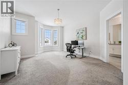 Nearly 4,000 sq ft Luxurious Executive Home Backing onto Grey Silo Golf Club, nestled in the prestigious Carriage Crossing subdivision. Rare tandem garage parks up to 3 cars, impressive 10’ ceilings on the main floor & 9’ ceilings on the 2nd level. The main floor showcases a stunning custom gourmet kitchen featuring a large island & a walk-in pantry. The elegant open to above great room is highlighted by a coffered ceiling, bright windows overlooking the backyard, & a two-storey stone gas fireplace. A large formal dining / living room with French doors, while a 5th bedrm / office off the spacious foyer provides an ideal main floor living option. The breakfast area opens to a covered patio. A rare 3pc bathrm on the main floor, along with a mudrm featuring custom locker-style cubbies. Upstairs, the spacious primary retreat features high cathedral ceiling, a luxurious 5pc ensuite & walk-in closet. Three additional bedrms include one with a private 3pc ensuite & two connected by a 5pc Jack & Jill bathroom. An upper laundry room & a loft overlooking the great room add both function & architectural interest. High-end finishes including premium doors & windows, granite & quartz countertops, hardwood flooring, ceramic tile, & extensive pot lighting. The large unspoiled basement will easily fit multiple uses including a home gym & an entertainment hub. The exterior impresses with brick & stone construction, an interlock driveway, & professionally designed landscaping. This one of Waterloo's most desirable neighbourhoods is adjacent to the famous Rim Park Sportsplex with various indoor or outdoor sports facilities such as hockey rinks & soccer fields etc. The Grey Silo's golf course or the Eastside Public Library, also the great natural environment with paved trails along the Grand River, be prepared to enjoy your life here & meet wildlife such as geese or deer etc. Within walking distance to Blackberry tech sector & bus route, a short drive to Universities & Conestoga Mall. (id:27)