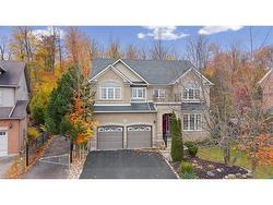 Welcome to 317 Winterburg Court — a polished executive residence that blends sophistication, versatility, and natural serenity in one of Waterloo’s most desirable enclaves. Set on a premium greenspace lot, this home delivers a seamless mix of architectural elegance and modern functionality — ideal for professionals, growing families, and those seeking the rare combination of privacy and proximity. A bright, open-concept layout greets you with clean sightlines and abundant natural light. The two-storey great room is the heart of the home — featuring floor-to-ceiling windows overlooking lush greenery, gas fireplace, and a custom built-in shelving wall with rolling ladder, designed for hosting or relaxing.The kitchen is practical and polished, with stainless steel appliances, natural wood cabinetry, and updated quartz countertop that anchors the workspace. An adjacent dining area opens to the patio, creating a seamless indoor-outdoor connection. A private office with yard access, formal living and dining rooms, and powder bath complete this level. Upstairs, the primary suite offers an integrated sitting area, gas fireplace, and treetop views that inspire calm. The ensuite bath is your private retreat, featuring dual vanities, a deep soaker tub, and a separate shower surrounded by natural light. Two additional bedrooms provide generous proportions and stylish finishes, easily accommodating family, guests, or home office needs. The finished basement expands your lifestyle options dramatically. It includes a bedroom, full bathroom, a large recreation area, wine cellar, and a fully outfitted workshop — the dream setup for a craftsman, entrepreneur or hobbyist. Backing onto a mature greenbelt with covered decks, the property provides rare privacy in a suburban context. The professionally landscaped yard and interlock patio make it easy to unwind or entertain in complete seclusion. Rarely offered in an exceptional neighbourhood, this home is ready for its new owners!