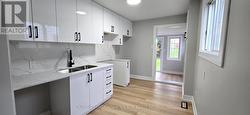 Ideal for first-time buyers! This move-in ready home offers a fully renovated main floor, including updated drywall, a brand-new kitchen with modern cabinetry/fixtures, and a stylishly updated bathroom with plumbing improvements. Enjoy wide plank flooring, new interior doors, and professional finishes throughout. The walk-up attic from the front bedroom provides a ton of storage with potential to finish for added living space - one section already partially completed (approx. 13' x 10.7'). Exterior updates include a newly built front deck and fresh paint for great curb appeal. Backs onto Bemus Park and is steps from shopping, schools, transit, and amenities. A fantastic opportunity to start homeownership and build equity - come take a look! (id:27)