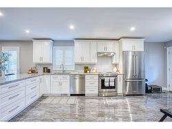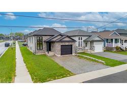This wonderfully updated raised bungalow is located in a thoughtfully designed, newly developed neighbourhood that offers both modern appeal and a strong sense of community, offering three bedrooms and two bathrooms that seamlessly blend modern design with timeless comfort. Surrounded by other elegant homes, the property stands out with its striking solid grey stone exterior, creating exceptional curb appeal and a lasting first impression. Inside, every detail reflects high-end craftsmanship, from the sleek flooring and tasteful lighting and premium fixtures that elevate each room. The main level features a bright, airy living room, a stylish chefs kitchen with contemporary cabinetry and a walkout to a private covered porch perfect for morning coffee or evening gatherings, two spacious bedrooms, and a well-appointed three-piece bathroom designed with both beauty and practicality in mind. The lower level continues the sense of luxury with a generous third bedroom complete with a walk-in closet, a spa-inspired bathroom boasting a six-foot shower with dual showerheads and elegant double sinks, a convenient utility and laundry area, and clever under-stair storage. A separate walkout leads to the backyard, offering privacy and endless possibilities for outdoor enjoyment. With the added potential to convert the lower level into a private suite or duplex for extended family or rental income, this home combines elegance, functionality, and exceptional value. Set in a quiet, modern neighbourhood, it presents a rare opportunity to enjoy the benefits of new community living while indulging in a truly move-in-ready, beautifully upgraded residence.