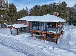 Escape to your own private paradise! A rare gem nestled on 10 acres of stunning natural beauty, complete with woodlands, a spring-fed pond, & fields of wildflowers. This charming home has seen many thoughtful renovations. The light-filled main floor boasts an inviting open concept layout, seamlessly connecting the kitchen, living room, & dining area, perfect for entertaining guests or simply enjoying family time. The newly added sunroom(2024) and composite covers deck includes beautiful electric fireplace and an independent heating and AC system making it a year round retreat. The main level also features the primary bedroom and a 4-piece bathroom along with two additional bedrooms. Venture to the lower level to discover a large rec room with a cosy wood stove (2023) with walkout to a custom exposed aggregate patio with a gazebo that would make the perfect home for your outdoor kitchen. You will also find an additional bedroom/den & another beautifully appointed 3-piece bathroom, complete with a six person sauna, offering a peaceful retreat at the end of the day. No detail has been overlooked in the construction of the 48 X 36 shop featuring a separate driveway, 21 ft ceilings and in floor heating powered by a high efficacy Viessmann boiler (2021) Indulge in the serenity of your own private oasis as you soak in the view from the decks overlooking the pond & rolling landscape. Listen to the birds, sit under a canopy of stars or be the first one up to watch the morning sunrise. Your magical & private haven is here. (id:27)