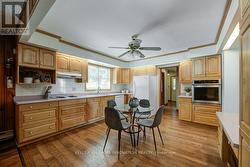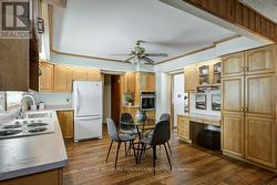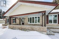 Looking for a BIG workshop? How about 2? Are you a tradesman, mechanic, landscaper? Need lots of storage for tools, equipment or vehicles? You've gotta see these 2 detached buildings located on this property. The first building measures 32 ft x 80 ft and has a heated wash bay for 2 vehicles, including compressor and power washer. Plus an additional interior heated garage located inside the big building which hold another 2-4 vehicles. The exterior asphalt parking pad holds 25+ cars. The second detached garage measures 35 ft x 18 ft, insulated with electricity. Stores another 2 vehicles. Finally, another double car garage is attached to the main house! This property has not been offered for sale in over 40 years and is now looking for it's new caretaker. This charming bungalow layout has 3 bedrooms, 2 bathrooms and 2941 sq ft of finished of living space! Enter the front foyer and find a bright living room/dining room open space with a beautiful bay window looking onto the covered front porch to the front yard. The open concept kitchen has ample maple cupboard space and a built-in desk. The family room has a lovely stone wall with built-in fireplace and sliding doors leading to the sunroom. The octagonal sunroom gives the feeling of cottage life and enjoying the outdoors from the comfort of your home! With sliding glass doors leading onto the back patio, this all season space is perfect for BBQ season, any season! Also found on the main floor are 3 spacious bedrooms and 2 bathrooms, one 3 piece and the other a 4 piece with double sinks! The laundry room is also conveniently located on the main floor. No carrying laundry to the basement! Head downstairs to the partially finished basement. Perfect for a home gym, craft room or home office. The basement area ready for your own decorating touch! Located in the small community of Brodhagen, this bungalow has the small town feel with easy and convenient access to the larger towns nearby! (id:27)