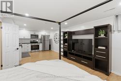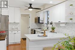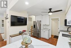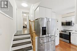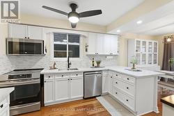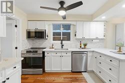 ***Open has been cancelled***Welcome to this beautifully updated home offering stylish finishes and thoughtful upgrades throughout. The main level features a bright, open-concept living and dining area, complete with rich hardwood flooring, pot lights and a large picture window that fills the space with natural light. The kitchen features tasteful finishes, including quartz countertops, a breakfast bar, stainless steel appliances, a stylish backsplash, gas stove hookup, and a convenient pantry for added storage. The adjoining breakfast area offers hardwood floors, a picture window, and an inviting open-concept design. Upstairs, the spacious primary bedroom offers his and hers walk-in closets and a private 2-piece ensuite. Newly installed sliding doors provide direct access to the backyard, creating a private retreat feel. Two additional bedrooms feature laminate flooring, closets, and bright windows, ideal for family or guests. The main bathroom includes a bidet for added comfort. The fully finished lower level provides exceptional versatility with a large recreation area featuring laminate flooring and pot lights, seamlessly combined with a new basement kitchen finished with quartz countertops and stainless steel appliances. A fourth bedroom adds flexibility for guests or a home office. The expansive deck is ideal for outdoor entertaining along with a metal gazebo for shaded relaxation. A powered backyard shed with two dedicated outlets offers excellent workspace or storage potential. Additional features include three LED-lit backyard street lamps, a generous built-in storage bench and ample outdoor space to enjoy year-round. Extensive upgrades, including updated windows and doors (front, side, and back), roof, siding, gutters and downspouts, insulated crawl space walls, an updated furnace and air conditioner, a basement kitchen addition and a 200-amp electrical panel upgrade. Shingles were replaced August 2022. (id:27)