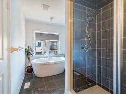 Discover lakeside living at its finest in Whitby's desirable Fieldgate Waterside Villas! This 1924 sf (as per MPAC) bright and spacious 3-storey townhome offers a rare double-car garage, 3 bedrooms, and 3 baths. Balconies Off The Kitchen & Main Bedroom. The open-concept main level features 9-ft ceilings, hardwood floors, and a modern kitchen with upgraded appliances, breakfast bar, and walk-out to a private balcony. The upper level hosts 3 generous bedrooms, including a primary suite with a walk-in closet, a private balcony, and a luxurious 5-piece ensuite with a freestanding soaker tub. The lower level offers a versatile family room that can be used as a home office, gym, or guest suite. Conveniently located minutes from the Whitby GO Station, Hwy 401, waterfront trails, parks, and the Whitby Yacht Club. Monthly maintenance fee includes common area upkeep, snow removal, gardening, and waste management. Close to Iroquois Beach, Lynde Shores Conservation Area, and downtown Whitby's shops and dining.