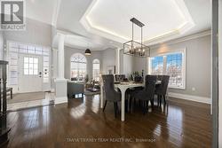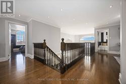 Welcome to 41 Apsley Crescent! From the moment you arrive, this home impresses with inviting curb appeal, a charming front porch, and a rare pool-size lot featuring two side-yard gates, parking for six vehicles, and no sidewalk to shovel!!! Step inside to a bright, open-concept layout flooded with natural light. Thoughtful upgrades include extensive pot lighting, custom wainscoting, crown moulding, and gorgeous hardwood floors throughout-anchored by a grand centre-hall staircase. The formal sunken living room and elegant dining room with coffered ceiling provide the perfect setting for entertaining. The gourmet kitchen is a showstopper, boasting vaulted ceilings, built-in stainless steel appliances, custom subway tile backsplash, quartz countertops, and a working centre island with breakfast bar. The adjoining breakfast area features a garden door walk-out to a brand-new entertainer's deck (2024) and a fully fenced backyard (2025) complete with a garden shed and relaxing Scandinavian sauna (2025). Additional main-floor highlights include a convenient laundry room with side-door entry. Upstairs, a versatile den offers an ideal space for home offices or studies. The main level primary retreat features a walk-in closet and a 4-piece ensuite, while all bedrooms offer generous closet space and large windows. The finished basement (2025) adds valuable living space with pot lights, above-grade windows, and ample storage. Perfectly located just steps to top-ranked Brooklin Village Public School with French Immersion, minutes to UOIT/Durham College, close to multiple golf courses, parks, and trails-and within walking distance to shopping plazas. A turnkey home designed for comfort, style, and everyday living! (id:27)