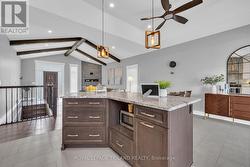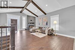 Beautiful 3+2 bedroom, 3 bathroom raised bungalow in desirable Lakeshore! Step into this stunning home through the enclosed front porch and be welcomed by the open concept main floor that exudes both elegance and warmth. Soaring ceiling enhance the grand atmosphere, while the exposed wood beams add a rustic yet sophisticated charm. A stone-accented fireplace create a cozy focal point in the spacious living area. The stylish white kitchen is a chef's dream, featuring granite countertops, quality appliances, and a beautiful backsplash that elevates the space. On the main floor, you will find two generously sized bedrooms, a full bathroom, and a convenient laundry area for added convenience. Upstairs, a unique loft design hosts the private primary bedroom complete with a luxurious ensuite, offering a peaceful retreat from daily life. Step out through the kitchen patio doors to backyard, complete with a covered porch and deck perfect for hosting BBQs and enjoying outdoor gatherings with family and friends. The fully finished lower lever offers two additional bedrooms, a full bathroom, and an oversize family room. A custom wet bar adds the perfect touch for entertaining guests in style. This house simply has all. Ready to move in. (id:27)