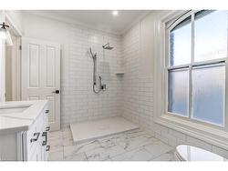 This beautiful and well-maintained Century Home combines timeless architectural charm with modern comfort, creating a welcoming and sophisticated living space. Its stately exterior and striking curb appeal make a lasting first impression.Step through the front foyer into freshly painted, high-ceilinged principal rooms filled with natural light. The inviting living room features a classic wood-burning fireplace, while the elegant dining room includes a charming butler’s pantry — perfect for entertaining.The newly renovated kitchen is a true showpiece, offering gorgeous quartz countertops, abundant soft-close cabinetry, and top-end appliances, including a six-burner gas stove, French-door refrigerator, stylish hood vent, and built-in microwave. There’s plenty of space for casual dining as well.The kitchen opens into a stunning new addition — a bright and airy family room with a gas fireplace and an abundance of windows overlooking the private backyard. A convenient side mudroom includes a stackable washer and dryer for main-floor laundry access. Recessed pot lighting throughout the main level enhances the home’s spacious, high-ceilinged rooms.Upstairs, you’ll find three generous bedrooms and two beautifully renovated three-piece bathrooms, offering modern convenience in a classic setting. A secondary staircase provides additional access between the kitchen and second floor.The full basement, freshly parged, provides excellent storage options. Outside, the fenced backyard offers privacy and a relaxing setting with a deck and patio area — ideal for unwinding or hosting family and friends.Perfectly located just minutes from downtown, this home offers easy access to the library, museum, art gallery, schools, restaurants, shops, places of worship, and the movie theatre.501 George Street blends the character of a bygone era with today’s modern lifestyle — an exceptional home that offers space, comfort, and timeless appeal.
