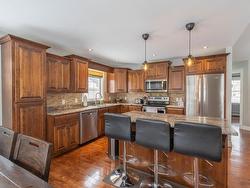 Executive 6-bedroom, 3-bath residence offering approximately 3,000 square feet of refined living space, ideally positioned on a quiet cul-de-sac just minutes from Charlottetown. Designed with quality and comfort in mind, this home showcases upscale finishes and a thoughtfully designed layout suited for modern family living. The main level features a welcoming foyer, an expansive living room with vaulted ceilings, and a well-appointed kitchen complemented by a separate dining area—ideal for both everyday living and entertaining. A full bath and private laundry room add convenience, while the main-floor primary suite provides a private retreat complete with a spacious walk-in closet and full ensuite. Two additional generously sized bedrooms complete this level. The bright lower level is enhanced by daylight windows and offers three additional bedrooms, a full bath, and an impressive rec room—perfect for family gatherings, a home theatre, or games area. Comfort is ensured year-round with a central ducted heating and cooling system (electric) and an oil-fired furnace provides baseboard heat on the main level and in-floor heating in the lower level and attached double garage, delivering efficiency and warmth throughout. A rare opportunity to secure a substantial, move-in-ready home in a sought-after location close to all amenities. All measurements are approximate and should be verified by the purchaser if deemed necessary. One of the vendors is a Realtor.