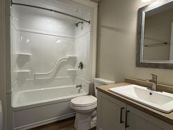 This beautiful 4 year old quality built semi-detached home is now ready for new owners to enjoy. Another Robert Moffat Construction Build that gives one peace of mind when it comes to workmanship. Location is always important and here you will be surround by quiet and friendly neighbors and have the convenience of all the city's amenities close by. As you enter the home the bright and large welcoming foyer is only the beginning of this spacious home and it's many features. The open concept kitchen, dining and living room is sure to impress, with an abundance of kitchen cabinets, an island with breakfast bar and stainless steel appliances. You will love the home's 9 foot ceilings, upgraded laminate flooring with cork backing and custom trim throughout. Off the dining area, the patio doors lead to the back covered patio and a fenced in backyard. The rest of the house features the primary bedroom with a large ensuite and a walk-in closet, a 2nd bedroom, a full bath and a laundry/mudroom leading to the 2 car garage that is insulated, finished, has a floor drain, and contains a storage room. This home is equipped with a water softener.