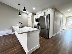 Luxury two bedroom, two bath retirement semi-detached home in quiet sub-division. 1370 square feet of living space in this unit. Engineered hardwood and ceramic flooring throughout. Master bedroom features a three piece ensuite and a very generous walk-in closet. The main floor laundry also doubles as a four piece bathroom conveniently located off the kitchen and second bedroom/den. The attached garage is heated, wired and finished plus is comes with a remote garage door opener and a large storage room for the things you need only occasionally. Swing by and take a peek. Premises renter occupied. Need 48 hours notice for showing appointment. Property being sold "as-is", no Property Condition Statement. Vendor has never occupied the home.