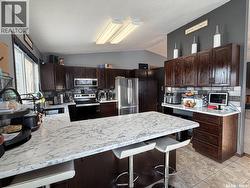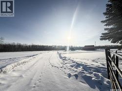 This acreage has the perfect location just 12 kms SW from Meadow Lake! Spacious, amazing layout and gorgeous natural light this 1991 bungalow checks a lot of boxes. Large entrance with great closet space and access to the double attached garage. Open kitchen and dining area offer plenty of storage and prep space with garden doors to south deck overlooking the vast yard. There are three bedrooms on the main floor; primary bedroom has a renovated 3 pc ensuite. The front entrance is large and offers plenty of closet space along with access to the double attached garage (28x26). Downstairs you’ll find a large games area, family room, 3pc bathroom, the 4th bedroom and an amazing sized laundry/utility room with great storage! Natural gas heating, well will plenty of water, storage sheds, metal clad barn (22x32) and so much more! For more information on this amazing property don’t hesitate to reach out! (id:27)