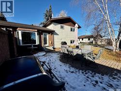 Welcome to 356 8th Ave E in Melville SK. This warm and cozy 4 level split home is move in ready with many of the expensive upgrades taken care of. The property is located on the east side of Melville on a high and dry lot. The main floor of the property has the living room, kitchen, and dining room with two good sized porch areas for entrance. The main floor has been updated with new LVP flooring, fresh paint, and a bay window overlooking the patio and back yard. The large windows throughout the home bring in lots of natural light. The bright kitchen includes the stove, fridge, and dishwasher. Up the stairs will take you to the 2nd level that have three excellent sized bedrooms. The 4 piece 2nd floor bathroom was fully renovated in 2022. Moving to the basement there are two levels below grade. The first level below grade features an extra large family room, office area (could be made into another bedroom) and updated 4-piece bathroom. The 2nd level below grade includes a rec room area with included hot tub (please note hot tub has not been used for 5 years and is sold as is). The utility room houses the HE Furnace (2020) with Central Air, Gas Water Heater (2015), 200 amp electrical panel, electrical panel for hot tub, washer, dryer, and lots space for storage. Speaking of storage, there is extra storage under the first level below grade. Moving outside, the fully fenced (PVC in 2024) spacious yard is perfect for family and/or pets. The yard features lawn, garden area, storage shed, three entry points, patio, and entry to the double car insulated garage. The exterior of the home is brick and siding. There have been some updates to the windows and shingles done in 2020. Enjoy close proximity to Melville Comp, Community Works, Melville Pool, and numerous parks. Melville is located 1.5 hours to Regina and 20 minutes to Yorkton SK. Energy 55, Power 164, Water Garbage Sewer 210 per month. The perfect family home in a move in ready condition. (id:7525)