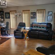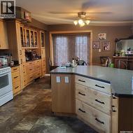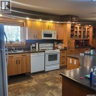 RM of Cana #214. Located only 7 miles east of Melville along Hwy #15 sits this beautiful quarter of land with an immaculate 11 acre yard site. The sellers are the original owners and built the house and developed the yard site. The house hade double 2" x 4" walls, newer triple pane PVC windows, stucco exterior, custom built kitchen cabinets, wood fireplace and composite decking on both decks. there are 3 bedrooms on the main floor plus another bedroom in the basement. the master bedroom also has a 2 pc ensuite. The laundry room is conveniently setup at the back entrance. The basement is fully developed with a huge family room, wet bar and another bathroom. The property is hooked up to the Yorkville water pipeline for an excellent water source. there is also a large dugout with a well beside it and has a pressure system in the house and can be used to water the garden and lawn area. The 28' x 32' garage has matching stucco finish with the house and has power and cement floor. There are numerous garden sheds, some with power, for extra storage. The fire pit area has brick walk way, with a TV stand and is well sheltered with trees and shrubs. (id:27)