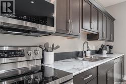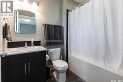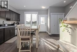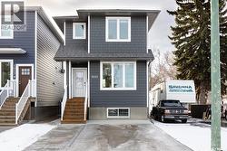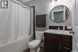 Welcome to this impressive, contemporary home with versatile living space across all levels! The main floor features a bright foyer, airy living room, 2-piece bathroom, and an efficient kitchen/dining area. Upstairs, the primary bedroom offers a private 4-piece en suite, along with two additional bedrooms, a full 4-piece bathroom, and second-level laundry for added convenience. The fully finished basement includes a family room, additional bedroom, 4-piece bathroom, utility room, and storage space. Outside, enjoy a concrete driveway out front and a low-maintenance backyard with deck, concrete patio, turf, and full fencing. A double detached garage completes the property. A well-maintained home with practical features and easy outdoor upkeep! (id:27)