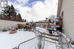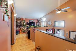 This innovatively designed four-bedroom bi-level with a double attached garage offers outstanding street appeal and a well-planned layout. An inviting tiled entry leads to vaulted ceilings over the main living area and stairwell, creating a bright, open feel. The open-concept living and dining spaces feature arched windows and hardwood floors, while the kitchen offers ample cabinetry, a wine rack, and a functional island—ideal for everyday living and entertaining. Two bedrooms and a four-piece bath complete the main level. The private primary suite occupies its own level and includes a walk-in closet and ensuite. All bathrooms feature in-floor heating for added comfort. The fully developed lower level provides a spacious family room, a flexible area suitable for a small bedroom or office, a three-piece bath, a generous fourth bedroom, and laundry/utility space. Newer garden doors off the dining area lead to a two-level deck overlooking a turfed and zero-scaped backyard—perfect for low-maintenance living. Additional features include central air conditioning, a gas fireplace, underground sprinklers, and low-maintenance landscaping. (id:27)