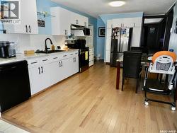 Excellent first time buyer home located in a family friendly neighbourhood! The spacious front foyer invites you into the warm sunken living room with vaulted ceiling. Hardwood flooring flows through the living room and into the large eat-in kitchen, highlighted with upscale appliances. APV: Fridge (2023), stove (2024). There are 2 bedrooms on the main floor. A Master that easily accommodates a king bed and a second bedroom with an updated 3 piece bath, great for teens or elderly care. An updated 4 piece bath round out the main floor. Two additional charming bedrooms complete the second floor. Bedroom windows may not meet current egress standards. Buyers and their agents to verify. There's laundry and room for storage in the basement. The front yard is conveniently zeroscaped and has a driveway. Enjoy the fully fenced back yard featuring a deck with a gazebo, a shed and an insulated, heated, 28x24, double garage (garage furnace is only a couple years old and shingles installed 2025). Central air was installed in 2022. This welcoming home is move in ready! (id:27)