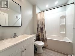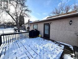 This home has been well cared for and it shows! It is not your average wartime home, with many renovations and an addition off the front and back, this home offers plenty of space. You'll be sure to appreciate all the storage the kitchen offers with cabinets all the way to the ceiling. Kitchen cabinets were replaced in the 90's. The drywall on the main was redone approximately 2015, and pot lights added to the living room space as well as the window replaced. The 4 piece bath was fully renovated last year and there is a den that offers a great flex space for a pantry/storage or a window could be added to make it a bedroom. The back addition features main floor laundry, a large closet off the back entry and a very spacious main floor master bedroom. There is plumbing roughed in for a second bath off the back entry. Upstairs are two additional bedrooms, one with a closet added in and custom storage added at the top of the stairs. The furnace and water heater have been replaced as well as the shingles. Outside you'll find a convenient chain link fence surrounding the front and back and a large deck. There is parking off the back alley and three sheds allowing plenty of storage room. This home has so much to offer, book your showing today. (id:27)