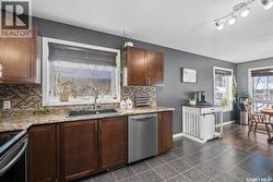 Stunning bi-level located close to schools, parks and the rotary trail! The main floor showcases a spacious kitchen finished with custom espresso maple cabinetry, arborite countertops, stylish backsplash, stainless steel appliances and flows naturally into the dining area to accommodate everyday meals and gatherings with ease. A cozy wood burning fireplace is positioned along the feature wall between the dining and living room, adding warmth and character to both spaces. Large picture windows flood the space in natural light, creating a bright and welcoming atmosphere throughout. The main floor also provides 2 good size bedrooms and a 4 piece bathroom featuring a beautiful tile tub surround. The fully finished basement offers two additional bedrooms, a generous family room, a 4 piece bathroom and a combined laundry/utility room. This lower level provides flexibility for guests, a home office, or growing families. Situated on a fully fenced yard that has mature trees, a patio area and is ideal for relaxing, entertaining, or enjoying summer evenings outdoors. Experience all this home has to offer. Book your showing now! (id:27)
