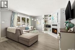 Prime location backing park and in a quiet Bay for this 3 + 1 bedroom, 2 bathroom bungalow with oversized single garage and large lot (6,236 sq. ft). Separate entry to basement. Upgraded PVC windows on main floor/6 yrs, new modern vinyl plank flooring throughout main floor/4 yrs, shingles upgraded/14 yrs, gorgeous bathroom renovation/5 yrs, maintenance free soffits, facia, eaves & siding, overhead garage door/2 yrs. Kitchen features white & grey cabinetry, fridge/stove/b/I dishwasher/over the range microwave/hood fan, pantry, newer vinyl plank flooring and upgraded window. Spacious livingroom with corner wood burning fireplace, built-in modern shelving, large upgraded picture window & new vinyl plank flooring. Beautiful upgraded 4 pc bathroom with deep soaker tub, ceramic backsplash, newer window, modern vanity & vinyl plank flooring. 3 bedrooms on the main floor all with upgraded pvc windows & modern vinyl plank flooring. The basement features a large recroom , kitchen area with built-in cabinetry & sink, 1 bedroom, 3 pc bathroom and laundry/storage with washer & dryer included. A great family home. (id:27)
