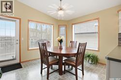 Welcome home to this well-maintained 5 bedroom, 3 bathroom, custom-built bungalow by Varsity Homes that is nestled in the heart of Creekside. Excellent location, close to a spray park and steps away from walking trails and Parkridge park. With easy access to all east end amenities and Highway #1, this home offers the perfect combination of comfort, style, and functionality in a highly desirable location. Upon entering, you'll be greeted by a spacious foyer leading directly into a double attached, insulated garage—perfect for our Saskatchewan winters. The open-concept living space is both inviting and functional, with a bright and airy living room that flows seamlessly into the eat-in kitchen. The kitchen features white cabinetry, a built-in computer nook, a generous pantry, and stainless steel appliances, including a brand-new dishwasher (2026). Step through the garden door off the dining area and enjoy your morning coffee on the deck. The fully enclosed backyard offers the ideal setting for relaxation and entertaining, with the added convenience of a storage shed—perfect for stowing away seasonal items and extra storage. The main floor boasts 3 bedrooms, including the spacious primary suite with a 3-piece ensuite and walk-in closet—the perfect retreat after a busy day. Downstairs, the professionally developed basement (completed in 2019) adds even more value, featuring 2 additional large bedrooms, a massive rec room, a 3-piece bathroom, and a laundry room with abundant storage space and included LG washer and dryer set. The shingles were updated in 2015, providing peace of mind for years to come. This home is a must-see for growing families—with plenty of space to entertain, relax, and grow. Don’t miss the opportunity to make it yours, contact your agent today! As per the Seller’s direction, all offers will be presented on 02/23/2026 6:30AM. (id:27)