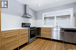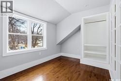 Welcome to 2255 Montreal Street, a charming 1921 character home where timeless appeal meets thoughtful modern updates. With mature trees and a welcoming front veranda, this home offers classic street presence and a warm first impression. Step inside to find hardwood floors throughout the main level and a bright, show-stopping kitchen that truly anchors the home. The modern kitchen features an abundance of cabinetry and workspace, crisp white tile backsplash, and a stainless steel appliance package including stove, dishwasher, and oversized fridge and freezer. This space blends function and style beautifully. The main floor also offers a comfortable living room with updated lighting and pot lights, along with a dining area recently upgraded with a new garden door leading to the backyard, perfect for easy indoor-outdoor living. Upstairs, you will find three bedrooms with hardwood flooring, custom shelving, and charming exposed brick details that highlight the home’s original character. A beautifully updated four-piece bathroom completes this level, featuring a deep soaker tub and a separate stand-up shower. The basement provides laundry and ample storage space. Outside, the yard is ready for your vision and is framed by mature trees. A single detached garage offers storage, along with an additional parking stall for convenience. Located within walking distance to Balfour Collegiate and Miller High School, and close to the General Hospital, parks, and everyday amenities, this home offers excellent accessibility for daily life. Significant upgrades have already been completed, including new shingles in 2026, updated vinyl siding, windows and doors, kitchen, bathroom, appliances, and more. This move-in ready home sparkles and is ready to welcome its next owners. (id:27)