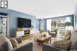 Beautiful 4-bedroom, 2-bathroom bungalow in the heart of Whitmore Park. This well-kept 1,134 sq ft home offers great curb appeal, an attached single garage (converted from a carport in 2024), and a long list of updates completed by both the previous and current owners. Recent improvements include: windows, window treatments, kitchen cabinet doors, backflow valve, front and backyard landscaping, and a concrete driveway (2018). Additional upgrades by the current owner feature LG ThinQ dishwasher, washer, and dryer (2022), stainless steel deep laundry sink, over-the-range microwave (2022), closet shelving (2022), LG ThinQ stove (2024), basement window (2024), roof professionally cleaned (2023), regrading completed in 2024, and the 2024 carport-to-garage conversion. Inside, you are welcomed by a spacious living room highlighted by large windows that fill the space with natural light. The kitchen and dining area are thoughtfully separated from the main living space, offering added privacy. The main floor features hardwood flooring throughout, three generous bedrooms, and a 4-piece bathroom complete with a deep soaker tub. The primary bedroom boasts a large window and excellent natural light. The professionally developed full basement adds even more versatility, offering an additional bedroom, a recreation room, a bonus room, and a 3-piece bathroom—ideal for extended family, guests, or extra living space. Located in the highly desired neighbourhood of Whitmore Park, this home is close to multiple schools, the University of Regina, and a wide range of south-end amenities including restaurants, Southland Mall, gas stations, and grocery options. The concrete double driveway provides ample parking, while the lovely fenced backyard and side deck offer a perfect space for gardening, relaxing, and family gatherings. A wonderful opportunity in a fantastic location. A must-see. (id:27)