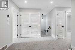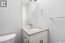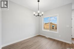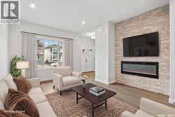 Welcome to the Ashwood, premier builder Ehrenburg Home's latest offering in Eastbrook! Laneway homes now including double detached garages! A vibrant new area close to all amenities, schools and parks. Top quality construction and materials used throughout. Main floor layout is perfect for entertaining. Spacious front entry leads to a wide open floor plan. Large living room with stack stone feature wall with electric fireplace. Beautiful contemporary design. Kitchen features center island/eating bar, pantry, and quartz counters. Extra large eating area to accommodate family dinners. Handy 2 piece bath off the rear door. 2nd level boasts large primary suite with walk in closet and ensuite, two additional bedrooms, full bath and handy laundry room. Bsmt has side entrance for future development. Exterior walls are framed and insulated with roughed in plumbing. All Ehrenburg Homes offer a superior construction foundation with a 4" rebar reinforced slab and is built on piles. Double detached garage 20x22. Exterior front landscaping, and underground sprinklers (front only) are included. Sask new home warranty included. So many extras with an Ehrenburg Home call today for more details! PHOTOS FROM PREVIOUSLY STAGED BUILD (id:27)