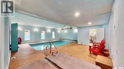 Tucked in one of Regina’s most sought-after east-end neighborhoods, this 3365 sq/ft home sits proudly on a spacious 6200 sq/ft corner lot just steps away from W.S. Hawrylak School and the University of Regina. Perfect for large or growing families. With extensive renovations completed in 2025, this property combines impressive updates with everyday comfort. The highlight of the home is the indoor pool, offering year-round enjoyment. The pool area received a full overhaul that includes a new HVAC system, high-efficiency furnace, on-demand water heater, new shower, upgraded electrical and plumbing, fresh stucco, windows and doors, and waterproofing throughout. Even the pipe from the skimmer to the pump has been lined to prevent leaks, and a new pool cover is on order. Every detail was carefully considered to create a clean, functional, and efficient space. Inside, the kitchen features custom-built cabinetry topped with black granite counters and ceramic tile flooring. Under the bay window, spray foam insulation was added for efficiency. The upper level has seen a complete refresh with new vinyl flooring, updated electrical and lighting in the media room, new interior doors, and all new windows. The upstairs bathrooms have new fans and exterior vent piping, and modern lighting brightens the stairway. The cozy wood-burning fireplace, finished with ledgestone grey tile, was redone in 2017. The home is supported by two steel main beams, and the living room sits on piles for lasting stability. Other notable features include main floor laundry, central vacuum, a double attached garage, underground sprinklers in the front and back, and professional interior painting throughout. The attic insulation was fully replaced and blown in new, while the exterior shines with new shingles, eaves, fascia, soffits, and windows, all completed in 2025. This is a rare opportunity to own a truly unique property that offers both size and substance in a prime Regina location. (id:27)