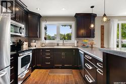 Fully finished three level split home with approximately 1500 sq ft of total living space is setup on a quiet crescent. Main level includes large east facing living-room window, updated kitchen with large sit up island, newer appliances, separate dining area with direct access to deck with natural gas bbq connection. Upper level includes three bedrooms. Updated three piece bath. Lower level with rec-room, plus an additional room that could be setup as home office, gym or bedroom, two piece bath and laundry. Back yard is fully fenced and landscaped. Bonus items: All appliances included, PVC windows, updated High Efficient Furnace and A/C. (id:27)
