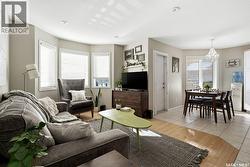 Every home has a story, and this one is filled with love, joy, and connection. From lunch-and-learns with coworkers to book club nights, grandchildren’s birthdays, and sleepovers, this condo has been truly lived in and cherished. This 960 sq ft ground-floor condo offers the perfect balance of space and coziness. Bathed in south-facing sunlight, the open, flowing floor plan feels warm and serene. The eat-up island provides extra dining space, excellent storage with roll-out drawers, and is moveable, giving you flexible options when family comes over. The spacious primary bedroom includes a 3-piece ensuite and walk-in closet. The second bedroom works beautifully as a guest room or office and features new vinyl plank flooring and its own walk-in closet. A generous 4-piece main bath with built-in storage is ideal for linens. The wide hallway accommodates both a large pantry and a separate laundry/freezer space. Step outside to the covered south-facing patio, your perfect morning coffee spot or peaceful evening reading nook, privately tucked beside a green space. The utility shed houses mechanical components and offers bonus storage. Additional perks include a single detached garage (with extra storage) plus one electrified surface parking stall. This is a unique 4-plex unit—the only one of its kind in the complex (all others are 8-unit buildings). It’s ideally located near green space, visitor parking, and backs onto residential homes for added privacy. You’re also close to schools, the walking path to the Sandra Schmirler Leisure Centre, Everyday Kitchen, and east-end shopping. It’s a wonderful neighbourhood to call home. Don’t miss this rare opportunity in Windsor Park. As per the Seller’s direction, all offers will be presented on 02/17/2026 12:00PM. (id:27)