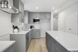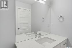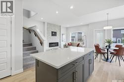 Welcome to the Wasserberg Townhome! Ehrenburg Homes latest offering in the vibrant community of Eastbrook. This one of kind new build offers spacious family living with contemporary design. Lovely street appeal with charming from verandah. Spacious entry leads to large living room with picture window views of Maka Park. Kitchen featuring, centre island, 2 pantry's! and abundance of stone countertops and custom tiled backsplash flows into the oversized dining room with plenty of space to accommodate large family gatherings. 2pc powder room and large rear entry lead to the massive 21.4x25.9 double attached rear garage with back alley access. 2nd level features massive primary suite with walk-in closet and full 4pc ensuite. Large bonus room and 3 additional bedrooms are genrously sized. 2nd floor laundry and main 4pc bath. This end unit Townhome also offers side entrance for future suite development. Exterior walls are framed and insulated with roughed in plumbing. Superior construction foundation has a 4” rebar reinforced slab and is built on piles. Exterior features front landscaping, sidewalk, and underground sprinklers. Interior photos from previous build layout and colors may vary. Call for more information! (id:27)