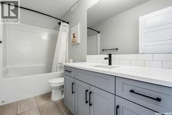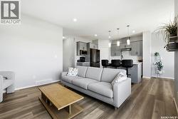 Welcome to Westerra. New-build energy… without the new-build wait. This fully finished two-storey offers the space, flexibility, and upgrades today’s buyers are searching for, all move-in ready. Step inside to a bright and inviting main floor featuring durable luxury vinyl plank flooring throughout. The heart of the home is the beautiful kitchen, complete with quartz countertops, stainless steel appliances, and ample cabinetry, flowing seamlessly into the dining and living areas. Large windows flood the space with natural light, creating a warm and airy feel. The main floor also offers a versatile bedroom and a full 3-piece bathroom, ideal for guests, in-laws, a home office, or a dedicated playroom. Upstairs, you’ll find a spacious primary suite with a walk-in closet and a luxurious 5-piece ensuite. Two additional bedrooms, a 4-piece bathroom, a dedicated office space, and the convenience of upstairs laundry make this level as functional as it is comfortable. The fully finished basement adds incredible value, featuring a separate side entrance, a large recreation area currently set up as a gym and family room, an additional bedroom, and another full bathroom. This space offers excellent flexibility for extended family, and guests. Outside, the fully fenced backyard is ready to enjoy, the front yard is landscaped, and the insulated double garage is equipped with an EV charger. Stylish, spacious, and truly turnkey, this home is ready and waiting for its next owners to move in and make it their own. Westerra is a wonderful place to call home, offering a welcoming community feel with a local park and daycare nearby, all while providing quick and convenient access to everything Regina has to offer. (id:27)