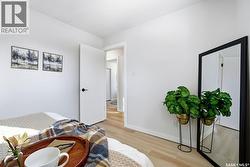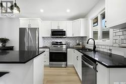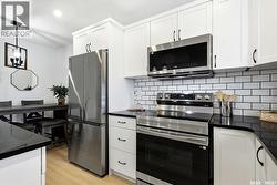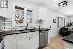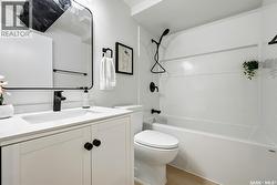 Welcome to 915 Rowell Crescent N in desirable McCarthy Park! This fully renovated 1,064 sq. ft. bungalow offers modern style, quality updates, and a completely move-in-ready interior from top to bottom. The bright main floor features new vinyl plank flooring throughout, a spacious sun-filled living room, and a stunning updated kitchen with white cabinetry, subway tile backsplash, black hardware, stainless steel appliances, and a functional island with seating. Three bedrooms are located on the main level, including a comfortable primary bedroom, along with a beautifully renovated 4-piece bathroom finished in crisp, contemporary tones. The fully developed basement has also been refreshed and provides incredible additional living space, highlighted by a massive 13’ x 34’ recreation room, a fourth bedroom, a second renovated 4-piece bathroom, and a dedicated laundry area—ideal for families, guests, or flexible living needs. Situated on a 4,400 sq. ft. fully fenced rectangular lot with mature trees, a concrete driveway, and parking for two vehicles. Located close to schools, parks, and North Regina amenities, this is an excellent opportunity for buyers looking for a fully updated, turnkey home in a well-established neighbourhood. (id:27)