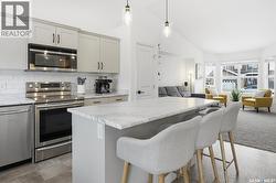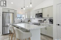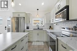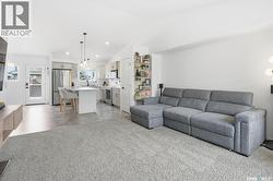 Exceptional west-backing property in a prime Stonebridge location, this meticulously maintained 1105sqft bungalow with a double attached garage shows like new inside and out. The bright, open main floor features vaulted ceilings, large windows, and thoughtful accents throughout, with a functional layout that includes two spacious bedrooms, a 3-piece bath, and a 4-piece ensuite. The kitchen offers excellent storage with two pantries, an island, abundant cabinetry, and recent updates including new tile backsplash (2025), and upgraded countertops (2025). Additional improvements include a new fence (2022), fresh interior paint (2025), updated landing flooring (2025), a fully upgraded main bath (2024), a beautifully renovated downstairs bathroom (2025), and a new in-swing back door (2025). The basement includes a finished bedroom with an adjoining 3-piece bath, while the remaining space is open for future development. Modern comfort is enhanced by central air, a high-efficiency furnace, HRV system, and smart-home features such as smart light switches throughout, an Ecobee thermostat, and a smart garage door opener. The west-facing yard is complete with a treated deck with metal railing, lawn, trees, shrubs, underground sprinklers, and updated finishes that complement the home’s care and quality. All stainless steel kitchen appliances and washer/dryer are included. Ideally located within walking distance to amenities with quick access in and out of Stonebridge—this home is truly move-in ready. (id:27)