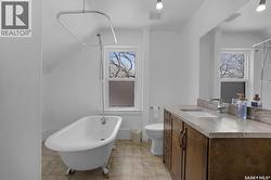 Welcome to 1310 Avenue G North! Extremely affordable & move in ready! Nestled in the heart of Mayfair with excellent neighbors all around this 1 & 3/4 storey home boasts 1050/2 sqft, 4 bedrooms & 2 baths. The front west facing porch welcomes you with newer windows in 2017. Main floor spacious living/dining/kitchen area with some brand new carpet and laminate in the front entrance in Dec. of 2025. Modern white kitchen with ample cabinets and huge island. 2nd floor features a full 4pc bath with claw foot tub and 3 spacious bedrooms all with new carpet. The basement offers a 1 bedroom self contained mother in law suite or could be a non conforming suite to help with mortgage payments! This home has had extensive renos and upgrades such as wiring, windows, heat pump, tankless water heater and high efficiency furnace, low flow toilets in 2024, full interior paint, electrical outlets, ceiling fans and Eccobee thermostat all in 2025, appliances on main in 2018. Hascap fruit producing trees, 14x28 detached garage, back alley parking spot and much more! This is an excellent opportunity for first time buyer's, revenue seekers, multi-generational living or anyone looking to get into the market! Quick possession is available! Don't sleep on this one, it will be gone! Call your favorite Realtor® for a private viewing today! (id:27)