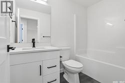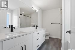 Modern 1,993 sq. ft. two-storey home featuring a rare main-floor bedroom and 3-piece bathroom, ideal for guests or multi-generational living. This 4-bedroom design offers 9’ ceilings on the main level, laminate flooring throughout the main and second floors, and ceramic tile in bathrooms with tiled shower surrounds. The kitchen showcases a large quartz island, subway tile backsplash, soft-close cabinetry, walk-in pantry. Upstairs includes additional bedrooms and a well-appointed ensuite with double sinks, soaker tub, and custom tiled shower with glass enclosure. Additional highlights include pot lighting inside and out, upgraded black fixtures, comfort-height toilets, on-demand hot water, HRV, and high-efficiency furnace. Exterior is complete with triple-pane windows, covered front entry, concrete driveway, front landscaping. (id:27)