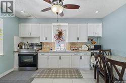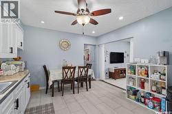 Bright, well-kept 1969 bungalow on a 50×130 corner lot in Meadowgreen—~2-min walk to the Dawah & Community Centre, steps to 22nd St transit/amenities, and an easy stroll to St. Paul’s Hospital. Main level offers 3 bedrooms, a gorgeous eat-in kitchen (tile flooring, ceiling fan, LED pot lights, long run of cabinetry), a comfortable living room, and an updated 4-pc bath with tiled surround/niche (see photos). Bedrooms show warm wood tones; vinyl plank runs through most of the main for easy care. The enclosed back porch adds year-round utility—cold-room storage in winter, gear space in summer. Finished lower level features a bedroom + windowed den (use as office/flex), a bathroom with in-bath laundry (see photos), and extra storage. Outside, enjoy a fully fenced, extra-deep backyard with rear gate access and a single detached garage with opener and space for a workbench. Mature city trees are beyond the rear fence—so you get privacy and shade without giving up usable yard area. Possession March 2025. (id:27)