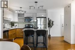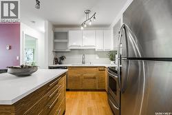 Welcome to 304 - 415 Hunter Road (building B), in Saskatoon's much sought after Stonebridge neighbourhood. This condo is located on the top floor and faces green space behind the building; both are ideal when shopping for a condo. Walking in you are greeted with a modern kitchen. Featuring stone counter tops, storage, stainless steel appliances, and an island for additional food prep space. There are 2 bedrooms and 1 full 4-piece bathroom. Bedrooms are located on either side of the condo allowing for privacy if you have a roommate or guests staying with you. Your deck overlooks a park-like area behind the building where, if you are lucky, you may spot wildlife scampering about. When you live here you will have 2 dedicated electrified parking spaces as well as access to the club house. This club house is not a depressing windowless box where people have donated their old used equipment. No. This is a beautiful space with a well appointed gym and an indoor pool. Cancel your expensive gym membership today! No excuses when you can simply walk out your front door to your very own gym and pool. 2 pets (dog, cat, bird or fish) are allowed in each unit, with a maximum weight of 35lbs. (id:27)