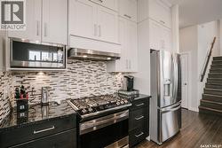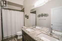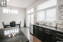 Elegance and a great design, this 1,531-square-foot Stonebridge modified bi-level is ideally situated on a premium corner lot. Soaring 10-foot ceilings and an abundance of oversized windows work in harmony to bathe the interior in natural light, creating an atmosphere that is both bright and impeccably maintained. The heart of this home serves as a true testament to quality craftsmanship. The cozy living room, anchored by gleaming hardwood flooring and a warm gas fireplace, flows seamlessly into a kitchen designed for the culinary enthusiast. This dream workspace is elevated by high-end stainless steel appliances, including a gas range, complemented by a large granite island and a convenient walk-in pantry. Adjacent to the kitchen, the spacious dining area opens through garden doors to a sun-drenched, south-facing deck, perfect for indoor-outdoor entertaining. The main floor features two generously sized bedrooms and a full bathroom, while the exclusive upper level is dedicated entirely to the primary suite. This private sanctuary boasts a luxurious ensuite finished with granite "his and her" sinks and an expansive walk-in closet. The impressive 9-foot ceilings ensure the lower level family room feels light and open. There is also a bonus area open for future development. Extras include an integrated Home speakers, central air and underground sprinklers. Outside, the property is fully landscaped and features a large private concrete patio and additional storage space tucked neatly under the upper deck. The main level has laundry and a boot room to a heated and boarded double attached garage. This move-in-ready residence offers a rare opportunity. Don't miss it! (id:27)