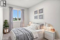 "NEW" Ehrenburg built [RICHMOND model] - 1555 SF 2 Storey. *LEGAL SUITE OPTION* This home features - Open Concept Design giving a fresh and modern feel. Superior Custom Cabinets, Quartz counter tops, Sit up Island, Open eating area. The 2nd level features 3 bedrooms, a 4-piece main bath and laundry area. The master bedroom showcases with a 4-piece ensuite (plus dual sinks) and walk-in closet. BONUS ROOM on the second level. This home also includes a heat recovery ventilation system, triple pane windows, and high efficient furnace, Central vac roughed in. Basement perimeter walls are framed, insulated and polyed. Double attached garage with concrete driveway and front landscaping Included. PST & GST included in purchase price with rebate to builder. Saskatchewan New Home Warranty. Currently Under Construction with a scheduled for an AUG 2026 POSSESSION -- ***Note*** Pictures are from a previously completed unit. Interior and Exterior specs vary between builds. (id:27)