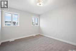 "NEW" Ehrenburg built [RICHMOND model] - 1555 SF 2 Storey. *LEGAL SUITE OPTION* This home features - Open Concept Design giving a fresh and modern feel. Superior Custom Cabinets, Quartz counter tops, Sit up Island, Open eating area. The 2nd level features 3 bedrooms, a 4-piece main bath and laundry area. The master bedroom showcases with a 4-piece ensuite (plus dual sinks) and walk-in closet. BONUS ROOM on the second level. This home also includes a heat recovery ventilation system, triple pane windows, and high efficient furnace, Central vac roughed in. Basement perimeter walls are framed, insulated and polyed. Double attached garage with concrete driveway and front landscaping Included. PST & GST included in purchase price with rebate to builder. Saskatchewan New Home Warranty. Currently Under Construction with a scheduled for a JULY 2026 POSSESSION -- ***Note*** Pictures are from a previously completed unit. Interior and Exterior specs vary between builds. (id:27)