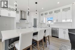 A brand new build by Bright Homes Construction. This 1440 square foot bi level has so much to offer. A double concrete driveway, along with vinyl siding and stone work provides great street appeal. When entering, you are greeted with a large entry way featuring tile flooring, and a good sized closet for storage. Leading up to the main floor you will notice the abundance of natural light through all the windows, and will enjoy the open concept layout. The kitchen is a dream. Floor to ceiling cabinetry, a full set of stainless steel appliances, and a large island makes this space a focal point of the home. Off of the kitchen is the dining area which has access to the back yard. The family room features a large south facing window, and an electric fireplace which is perfect for entertaining. There are 3 good sized bedrooms on the main floor. The two spare rooms both have awesome closets with built in shelving and cabinetry. The primary bedroom has a walk in closet with tons of storage, and a beautiful 5 piece en suite featuring a stand up tiled shower, soaker tub, and a double vanity. An additional 4 piece washroom featuring tiled tub/shower surround, and tiled flooring is also located on the main floor. For convenience, this home comes with side by side laundry, cabinetry and counter top which is also located on the main. The basement come fully finished featuring 2 bedrooms, a 4 piece washroom, games room, family room, and wet bar. (id:27)
