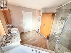 Welcome to 785 Washington Drive — a stunning custom-built bungalow on the edge of Weyburn with wide-open prairie views. This A-frame style home offers tonnes of living space with a bright, open main floor centered around a show-stopping floor-to-ceiling stone fireplace. The great room flows beautifully into the kitchen and dining area, complete with custom cabinetry and massive windows that bring the outdoors in. The primary suite is its own retreat with deck access, walk-through closets, and a spa-like ensuite. Two additional bedrooms, a full bath, and a large bonus loft space round out the main level. Downstairs, the huge in-floor heated basement offers endless options for entertaining, workouts, media space, plus two more bedrooms and a flex room. Outside, enjoy the two-tier deck, custom pergola with swing, underground sprinklers, and gas hookups — perfect for relaxing or hosting. This home has seen extensive updates, including granite countertops, updated flooring, custom shower, new shingles, fresh paint throughout, new lighting, high-efficiency furnace, on-demand water heater, and more. Big home, beautiful views, and tons of upgrades — this one truly has it all. Reach out to your favourite Agent to book your private showing. (id:27)