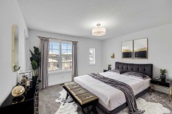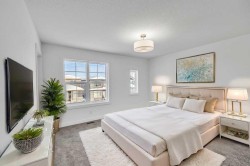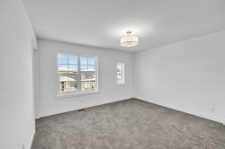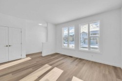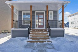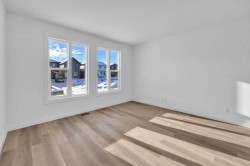 Welcome to this fully upgraded brand new single-family home located in the up-and-coming neighborhood of Chinook Gate in Airdrie. This is a fantastic opportunity to own a Brand new home without the wait! Built in 2024, this never-occupied home includes the Alberta New Home Warranty from the builder. With approximately 2632 sq ft of living space, this property features an ILLEGAL BASEMENT SUITE, a concrete parking pad, 4 bedrooms, 3.5 bathrooms, 2 living areas and a lot more to explore. The main floor boasts two spacious living areas, a generously sized kitchen with a pantry, and a dining area. Step inside to find a bright and inviting first living area with a large window. Sleek stainless steel appliances give the kitchen a stylish edge, while the open layout seamlessly connects to the family room, which is filled with natural light from large windows—perfect for entertaining or cozy family gatherings. Upstairs, you’ll find the primary bedroom, a bonus room, a laundry room, two bathrooms, and two additional well-sized bedrooms. The primary bedroom stands out with its luxurious ensuite bathroom, walk-in closet, and private balcony. The bonus room offers flexible space for an office, playroom, or extra living area, and the laundry room is conveniently located on this level. 2 other good size bedrooms which share a common bathroom completes the upper floor. The ILLEGAL BASEMENT SUITE includes a side entrance, a spacious bedroom, a bathroom, a kitchen, and a large living area with a huge window for natural light. The property also comes with a concrete garage pad ready for future garage development. Photos are taken before the tenants move in. Book your private showing today!