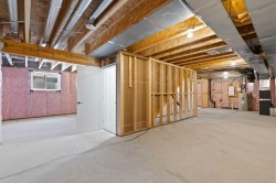 Discover this rare opportunity within Acadia Villas, an exclusive, private gated community nestled in the heart of the award-winning Cooper's Crossing neighborhood. Designed specifically for the discerning downsizer, this community features just 40 meticulously crafted, luxury bungalows, promising both security and serenity. Step into this exceptional bungalow, spanning 1,401 square feet of thoughtfully designed open concept living. The bright and airy ambiance in living area is defined by soaring vaulted ceilings that flood the space with natural light, enhancing the sense of spaciousness and grandeur. The main floor has an ideal layout which hosts 1 bedroom plus den and two full bathrooms, complemented by a practical back hall and a dedicated laundry room for ultimate convenience. The primary bedroom is a true sanctuary, featuring its own vaulted ceiling and generous proportions. The opulent five-piece ensuite is a spa-inspired finishes complete with a walk-in shower, a decadent freestanding soaker tub, and elegant double sinks. Throughout the home, you will find premium finishes including sleek quartz countertops with undermount sinks, durable luxury vinyl plank, and sophisticated tile flooring in all bathrooms. Every detail reflects an unwavering commitment to luxury and low-maintenance living. For those envisioning even more living area, the unfinished basement presents limitless potential. This expansive space offers the opportunity to add additional bedrooms, an expanded entertainment area, or a personalized recreational space—ensuring the home can grow with your changing needs. Acadia Villas provides luxury living without compromise, offering the independence of a bungalow with the security and maintenance-free ease of a gated community.