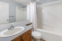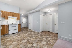 Welcome to the Links at Woodside, a beautiful Gated Adult Community (55+)! A warm and welcoming neighborhood that features a clubhouse for social events and is located just minutes from Woodside Golf Course, peaceful walking paths, and all the amenities you could ever need! This bright and spacious gem of a unit offers 2 bedrooms (or 1 + den) on the main floor, including a large primary bedroom with elegant hardwood flooring and a 4-piece bath conveniently located right beside it for added versatility. The open-concept kitchen and living room are perfect for cozy nights in, featuring two skylights that bathe the space in natural light, soaring vaulted ceiling, a charming corner gas fireplace, and patio doors leading out to your private back deck—ideal for morning coffee or evening relaxation. Some recent upgrades include a new hot water tank, newer washer and dryer and furnace motor replaced! Enjoy flexible laundry options with washer and dryer hook-ups on both the main floor and in the basement. The lower level is fully finished, offering a massive family room, a 3-piece bathroom, a den/craft room, and even a possible third bedroom (not proper egress)—making it easy to accommodate guests, hobbies, or additional living space, all while providing tons of storage. Visitor parking is conveniently located right across from the unit, pets are welcome with board approval, and the condo fees are just $289.40/month, covering snow removal and exterior maintenance. With a perfect location, smart layout, and community amenities like the clubhouse, you have everything you could want right at your fingertips. This beautiful home won’t last long—come see what makes it so special and book your private viewing today!