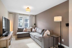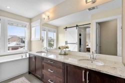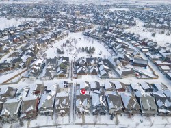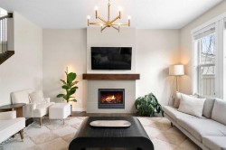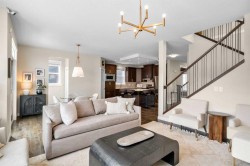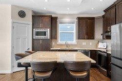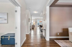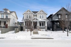 Welcome to a home that feels special from the moment you arrive. Set on a quiet street in Coopers Crossing, this beautifully finished two storey offers over 3300 sq ft of thoughtfully designed living space and the kind of curb appeal that instantly draws you in. Mature trees frame the yard, and the extended WEST FACING COVERED FRONT PORCH invites you to slow down and stay awhile. Inside, HARDWOOD FLOORS and 9’ ceilings create a warm, open feel. A versatile front den or formal dining room flows into a private home office through etched glass FRENCH DOORS, perfect for working from home in comfort. Updated lighting and a refreshed powder room add a modern touch. At the heart of the home, the GRAND KITCHEN features dark cabinetry, GRANITE COUNTERS, STAINLESS APPLIANCES including a new dishwasher and Samsung Bespoke fridge, a massive OVERSIZED ISLAND, and a coveted CORNER PANTRY. The sunny breakfast nook opens to the backyard, while the great room with GAS FIREPLACE offers a cozy place to gather. Upstairs, a central BONUS ROOM creates separation and privacy. The primary suite is bright and expansive with VAULTED CEILINGS, two WALK-IN CLOSETS one with an organizer, and a 5 piece ensuite complete with DUAL VANITIES, SOAKER TUB, and OVERSIZED WALK-IN SHOWER. Two additional spacious bedrooms, an updated 4 piece bath, and UPPER FLOOR LAUNDRY complete the level. The FULLY FINISHED BASEMENT adds incredible flexibility with 9’ ceilings, LUXURY VINYL PLANK flooring, a large rec room with ELECTRIC FIREPLACE, a fully-equipped Theatre Room WIRED FOR SOUND, a fourth bedroom, and a 3 piece bath. Outside, the deck is wired for a future hot tub, surrounded by mature trees, providing complete privacy in the summer, and newly added perennials in the FULLY FENCED yard. The OVERSIZED DOUBLE DETACHED GARAGE is insulated and drywalled, and CENTRAL AC keeps you cool all summer. Located right on Cooper's extensive pathway system connecting to ponds, parks, schools, and shopping, this move-in ready home offers space, comfort, and a location that truly stands out. Come experience it in person. Book your showing today!