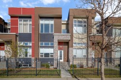 Your Airdrie haven awaits at 404-1530 Bayside Ave SW, a delightful townhouse nestled within the highly desirable Bayside community. Featuring 3 BEDS|2.5 BATHS| DOUBLE ATTACHED GARAGE| AIR CONDITIONER| FENCED FRONT YARD| EXTENDED BALCONY| GLASS RAILINGS| HIGH CEILINGS| OPEN TO ABOVE|, this home offers a wonderful living experience.Step inside to discover a perfectly designed main level, where the living room boasts an impressive open-to-above concept and soaring windows, bathing the space in warm natural light. For those moments of quiet relaxation, an electric fireplace adds a touch of cozy ambiance while you read or watch television.Ascend to the split-level upper floor, thoughtfully designed for all your daily dining needs. The open kitchen, complete with intelligently placed cabinetry offering ample pantry storage, is equipped with sleek stainless steel appliances to inspire your cooking needs. The adjacent dining space provides generous room for hosting large family meals and gatherings.Extend your living space outdoors onto the substantial balcony, enhanced with modern railings and offering a pleasant side view of the lake – a perfect spot to enjoy your afternoon tea with a smile. A convenient powder room completes this level.The upper floor also features a stacked laundry area with a contemporary washer and dryer unit for added convenience. Your primary bedroom serves as a true retreat at the end of the day, boasting an ensuite washroom with double vanity sinks. Two additional well-proportioned bedrooms on this floor can easily accommodate queen-size beds, and a full bathroom caters to the needs of a growing family.Benefit from the convenience of a double attached garage, along with an additional parking pad, providing space for up to four vehicles. The unfinished basement offers exciting potential for customization – envision a home office, a cozy den, or any other space to suit your unique lifestyle.Don't miss the opportunity to truly experience the charm of this wonderful townhouse. Book your personal showing today and take the first step towards making 404-1530 Bayside Ave SW your new address.Check 3D tour.